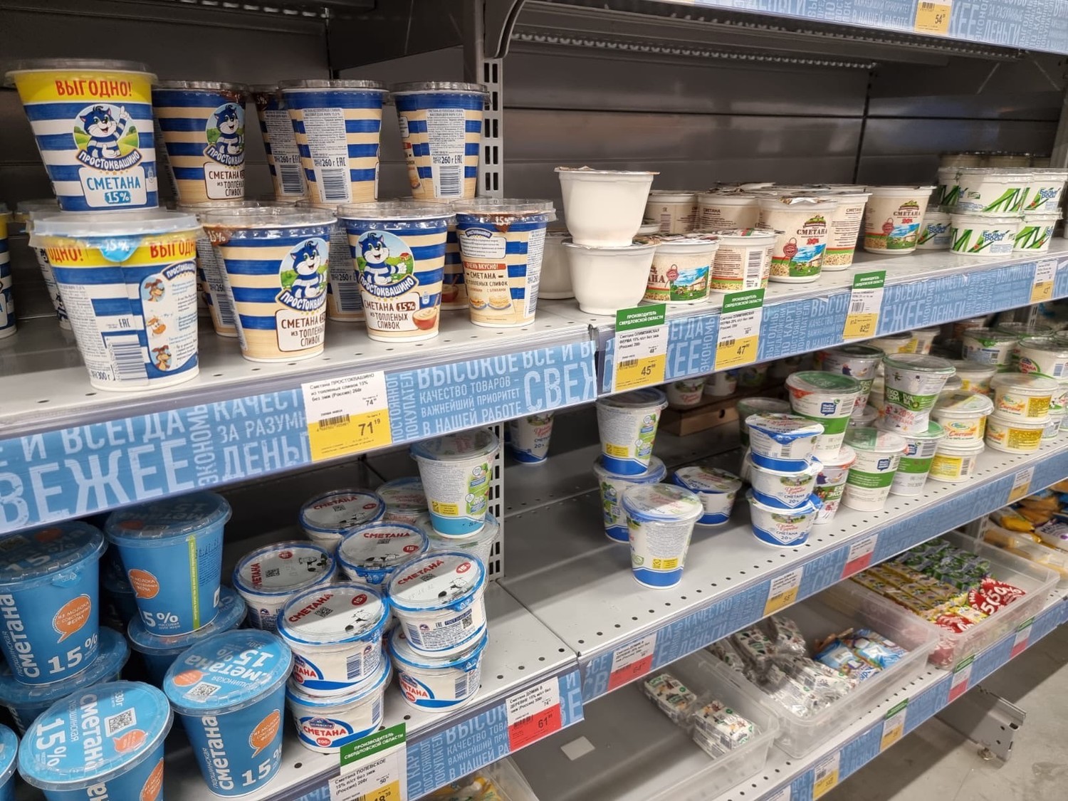 «Ещё в первую волну этот вопрос активно обсуждался. Без сметаны мы не останемся. Даже если Европа так сделает, то это будет хорошо, потому что у нас, к сожалению, ради удобства торговых сетей и покупателя делают длинные сроки годности. Кефирные грибы при нагреве активно начинают производить газообразование, бутылки на полках надуваются. В этом ничего такого нет, но народ уже забыл вкус настоящего кефира, мне кажется. Поэтому, если мы вернёмся к натуральным кефирным грибам, то только полезнее будет. И сроки короткие вернём, потому что производители почти все постепенно рынок двигают в сторону пролонгации сроков годности, закваски со стоп-эффектами», — прокомментировал бизнесмен.