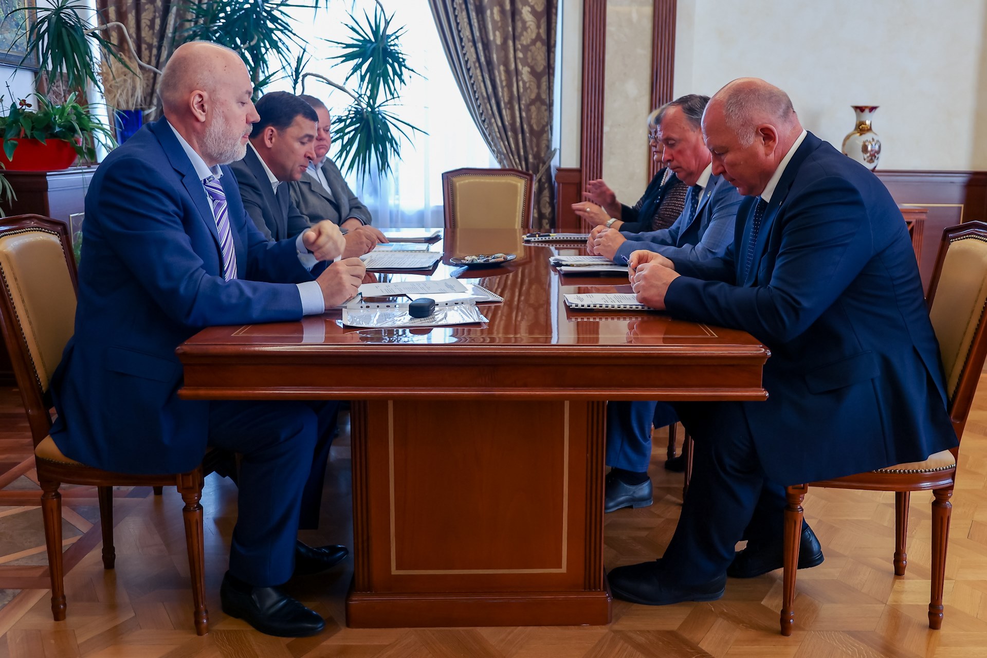 Губернатор Свердловской области Евгений Куйвашев и председатель комитета Государственной Думы по государственному строительству и законодательству Павел Крашенинников обсудили 22 августа вопросы организации работы на тер