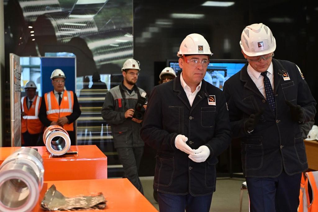 На Синарском трубном заводе (предприятие ТМК) губернатору презентовали линию по производству труб и учебный полигон ТМК2, где идёт подготовка будущих высококлассных специалистов завода.