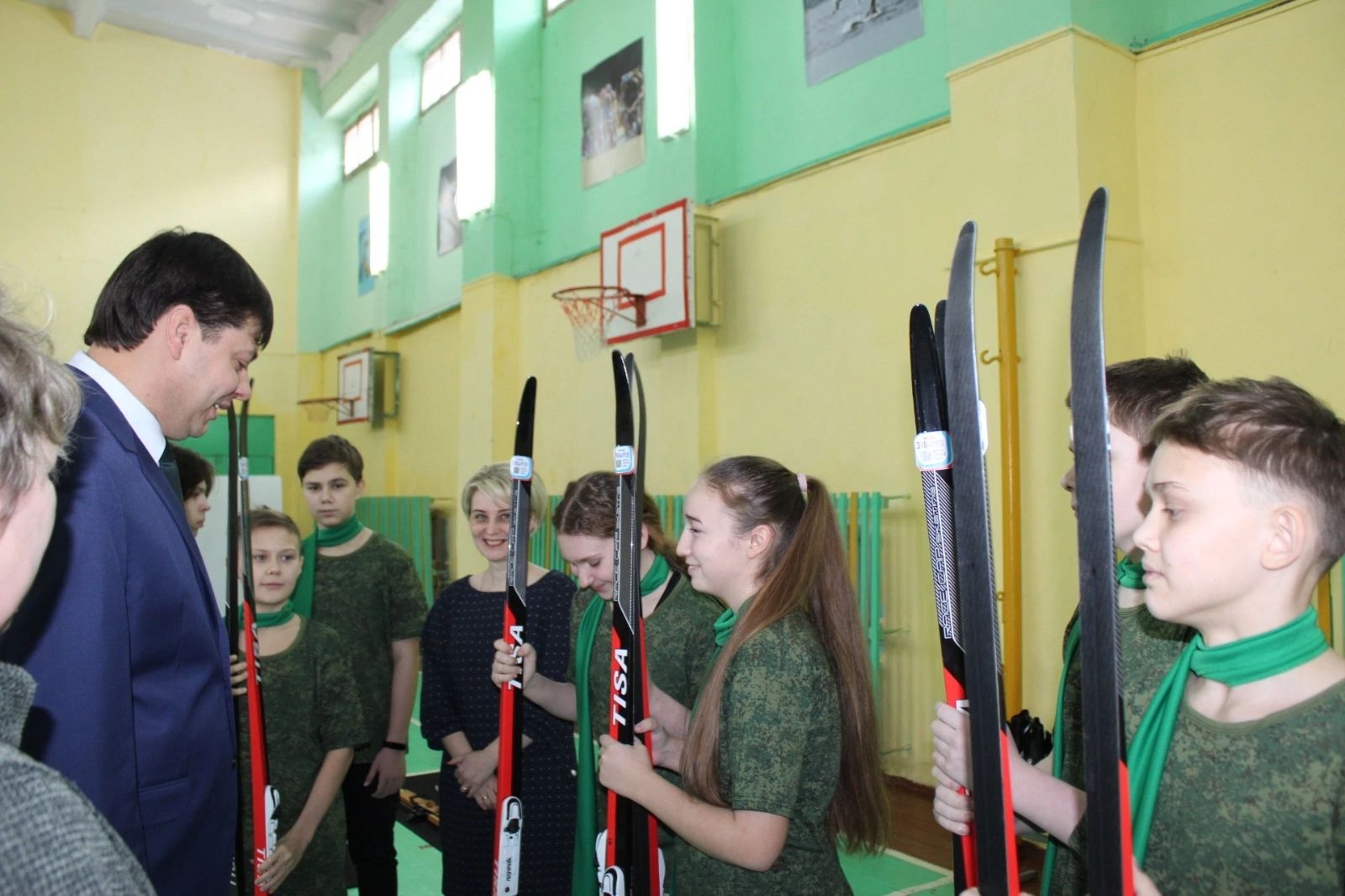 Михаил Зубарев подарил школьникам из Асбеста лыжи и ботинки для занятий биатлоном