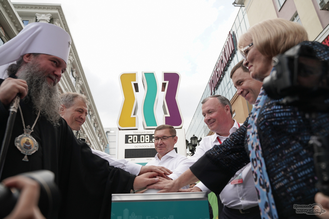 Пуск обратного отсчёта времени осуществили полномочный представитель Президента в УрФО Владимир Якушев, губернатор Свердловской области Евгений Куйвашев, Председатель Законодательного собрания Свердловской области Людмила Бабушкина, Глава Екатеринбурга Алексей Орлов, Председатель Екатеринбургской городской Думы Игорь Володин и митрополит Екатеринбургский и Верхотурский Евгений.