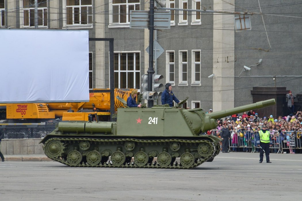 Всего от УВЗ будет двадцать экземпляров старинной военной техники в городах, где работает УВЗ. Это Нижний Тагил, Челябинск и Петербург. Например, в Челябинске будет три машины: танк Т-34, танк ИС-3 и самоходная установка ИСУ-152.