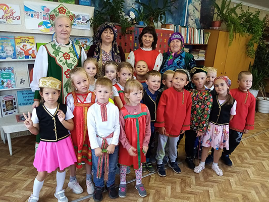 Воспитанники детского сада №13 «Колосок» пришли в библиотеку на праздник «Вместе дружная семья» в национальных костюмах. Ребята узнали об обрядах, приметах и поверьях народов Урала, познакомились с национальными костюмами русских, татар и башкир; поиграли в русскую игру «Ручеёк», татарскую игру «Тюбетейка», башкирскую игру «Юрта».