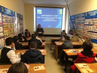 Так, в октябре УКП посетили 89 учеников старших классов БМАОУ «Гимназия № 5» под руководством учителя ОБЖ Маргариты Дмитриевны Дорохиной. В ходе посещения организации директор МКУ «ЦГЗ БГО» Геннадий Николаевич Саликов ознакомил учащихся со структурой учреждения, ее основными функциями, направленными на защиту гражданского населения в мирное время; старший оперативный дежурный ЕДДС (единой дежурно-диспетчерской службы) учреждения Ирина Викторовна Цыганова организовала для учеников экскурсию, продемонстрировав возможности службы 112 и показав фильм-презентацию о деятельности учреждения; ведущий специалист Леонид Николаевич Михайлов ознакомил присутствующих с эвакуационными мероприятиями, запланированными на случай возникновения в них необходимости и работой комиссии по повышению устойчивости экономики в Березовском городском округе; ведущий специалист МКУ Светлана Викторовна Волкова рассказала о проводимой работе по пожарной и водной безопасности. Специалист учреждения Татьяна Владимировна Пугачева, подводя итоги встречи, еще раз подчеркнула важность данного мероприятия в осознании молодым поколением основ безопасности жизнедеятельности, вручив на память буклеты и памятки по указанной тематике.