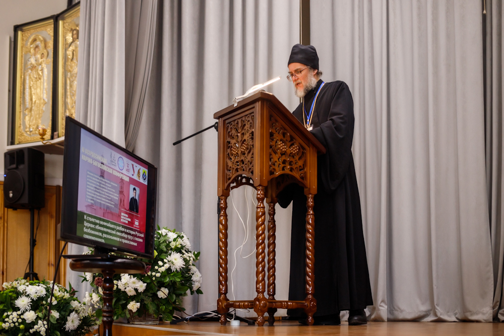 Священник Александр Мазырин — доктор церковной истории, кандидат исторических наук, профессор, заместитель заведующего научно-исследовательским отделом новейшей истории Русской Православной Церкви, профессор кафедры истории Русской Православной Церкви Православного Свято-Тихоновского гуманитарного университета представил доклад на тему: «К столетию величайшего разбоя в истории Русской Церкви: обновленческий лжесобор 1923 г. глазами безбожников, раскольников и православных современников».