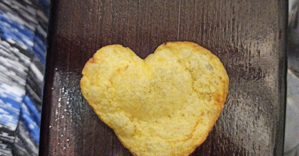 Ничего необычного в этом продукте питания нет. Это самый обычный кусочек картофеля из пачки с чипсами со вкусом «итальянские колбаски». От своих собратьев он отличается разве что формой сердца.