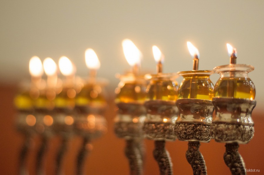 В дни праздника принято, чтобы в домах каждый вечер зажигался особый восьмисвечник – ханукия или ханукальная менора, в который наливают оливковое масло.