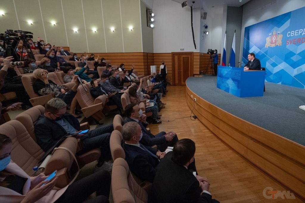 В ходе пресс-конференции глава региона ответил на вопросы, связанные с коронавирусом, эффективностью деятельности правительства, будущим нового здания филармонии, заброшенной больницы в Зеленой роще, QR-кодами в транспорте и торговых центрах, Универсиады, строительства ЕКАД.