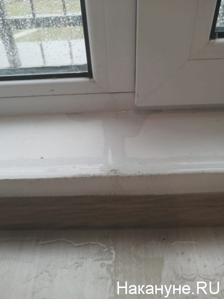 На кадрах, присланных в редакцию новоселами, видно подтеки на потолке и протекающее пластиковое окно.