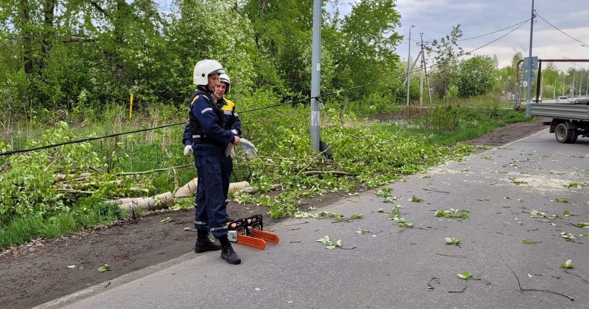 Кроме того, упавшее дерево стало виновником провисания линии электропередач. Спасатели преградили доступ посторонних к оголенному кабелю.