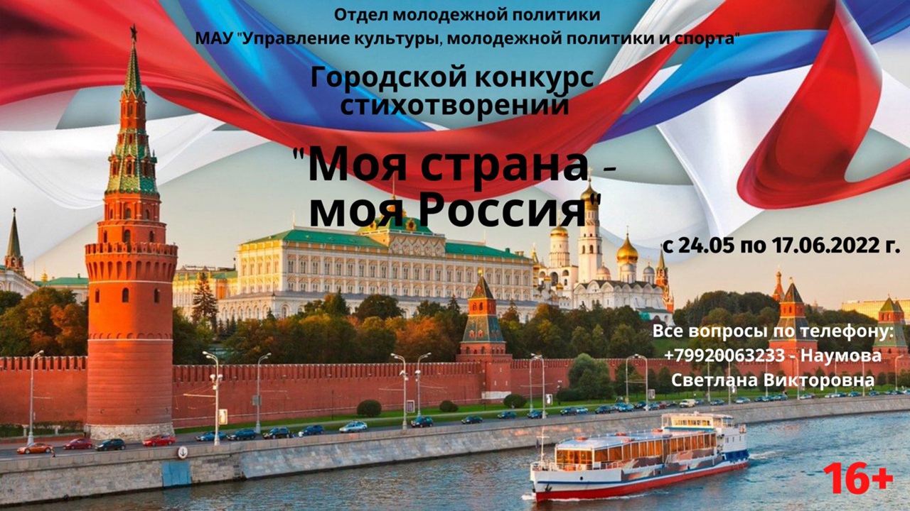 Напоминаем, что 24 мая запущен Городской конкурс стихотворений «Моя страна - моя Россия».