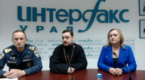 На конференции из студии «Интерфакса» в прямом эфире выступили: руководитель миссионерского отдела Екатеринбургской епархии иерей Даниил Рябинин, заместитель руководителя регионального ГУ МЧС России Алексей Вячеславович Морозов и врач-пульмонолог Наталья Михайловна Трифанова.