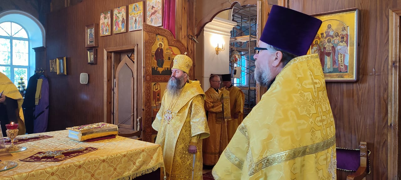 Его Преосвященству сослужили клирики собора протоиерей Алексий Агиевич, иерей Николай Иванов и иерей Евгений Самойлов.