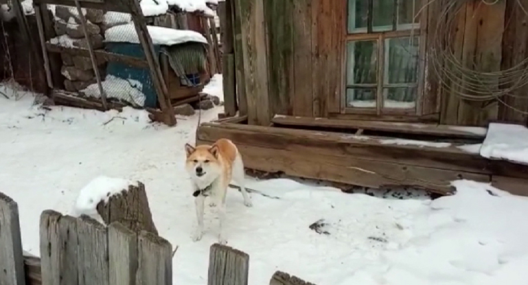 Пёс по кличке Бор усердно защищает дом от незваных гостей.