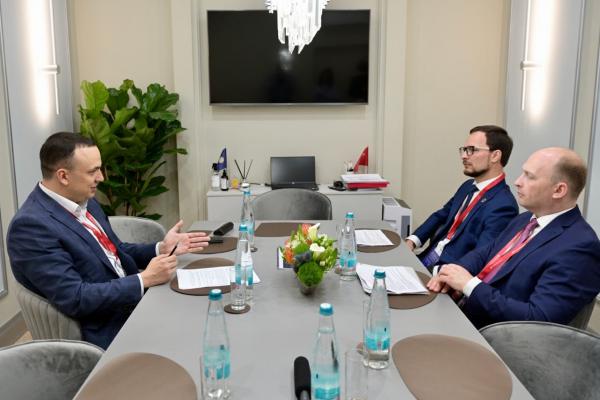 Фото: телеграм-канал "Бажовский сказ"На ПМЭФ засветился цифровой замгубернатора Дмитрий Ионин, - следит за ходом международного экономического форума телеграм-канал "Бажовский сказ" . Он обсуждал с представителями «Вымпелкома» айдиобейджи – устройство записи и распознавания речи компания предлагает использовать в МФЦ и соцучреждениях региона.
