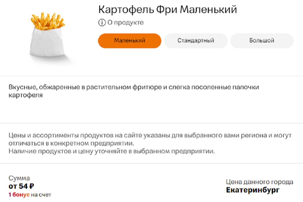 В екатеринбургских «Макдональдсах» появилась картошка фри. Из-за отсутствия популярного блюда летом предлагали луковые кольца.