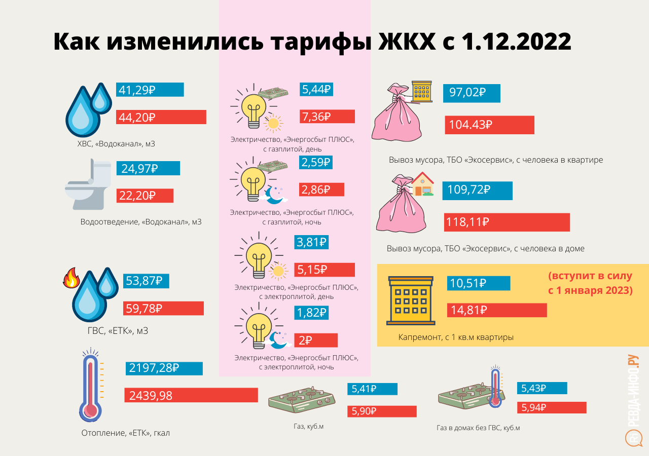 Вот какие тарифы начали действовать в Ревде с 1 декабря. Квитанции с такими ценами мы получим первый раз в январе. А в феврале придет повышенная квитанция за капремонт. В постановлении премьер-министра страны Михаила Мишустина указано, что предельный индекс роста тарифов на весь 2023 год — 0%. Если ничего не изменится, в следующий раз коммуналка подорожает только в июле 2024 года.