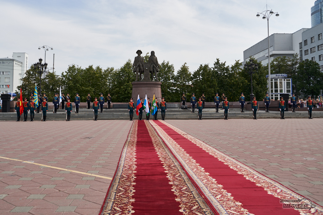 В церемонии возложения цветов к памятнику приняли участие полпред президента Владимир Якушев , глава региона Евгений Куйвашев , мэр Алексей Орлов и главы административных районов города. На мероприятии можно было увидеть выступление роты почётного караула Центрального военного округа.