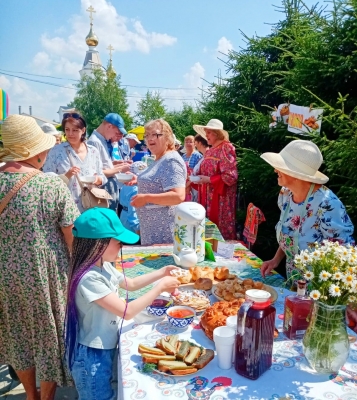 Широко развернулась, запестрела и загомонила площадка, где развернулся самый вкусный момент праздника «Хлебная ярмарка», где гостей праздника зазывали, угощали и развлекали добрые хозяюшки, активистки клубов по интересам Балтымской библиотеки-клуба. Участницы удивляли всех выпечкой по своим особым рецептам. Здесь можно было попробовать горячий чай с бубликами, вкусную окрошку, оригинальные бутерброды и овощные морсы с самым вкусным хлебом. А со сцены зазвучали милые сердцу народные мелодии в исполнении ансамбля народных инструментов «Калинка» Балтымской библиотеки-клуба под руководством Александра Фадеева.