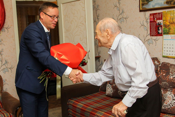 – От имени всех жителей города трудовой доблести поздравляю вас с вашим юбилеем. Сто лет – это целая эпоха, – сказал глава города, поздравляя ветерана. – Мы восхищены вашим оптимизмом, жизнелюбием, вашей прекрасной памятью. Хочу пожелать вам крепкого здоровья. Чтобы вы, как участник тех исторических событий, и дальше делились с вашими близкими и с нами воспоминаниями. Ваше поколение – пример того, как нужно любить и защищать свою Родину.