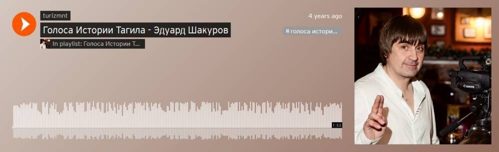 Сегодня аудиоиллюстрации истории Нижнего Тагила можно найти и прослушать на сайте Центра туризма в одноимённом разделе. Исторические аудиоистории взяты из литературных произведений уральских писателей Дмитрия Мамина-Сибиряка, Павла Бажова, Дмитрия Менделеева, Виктора Данилевского. Актёры, ведущие, директора и руководители предприятий и администрации Нижнего Тагила читают их.