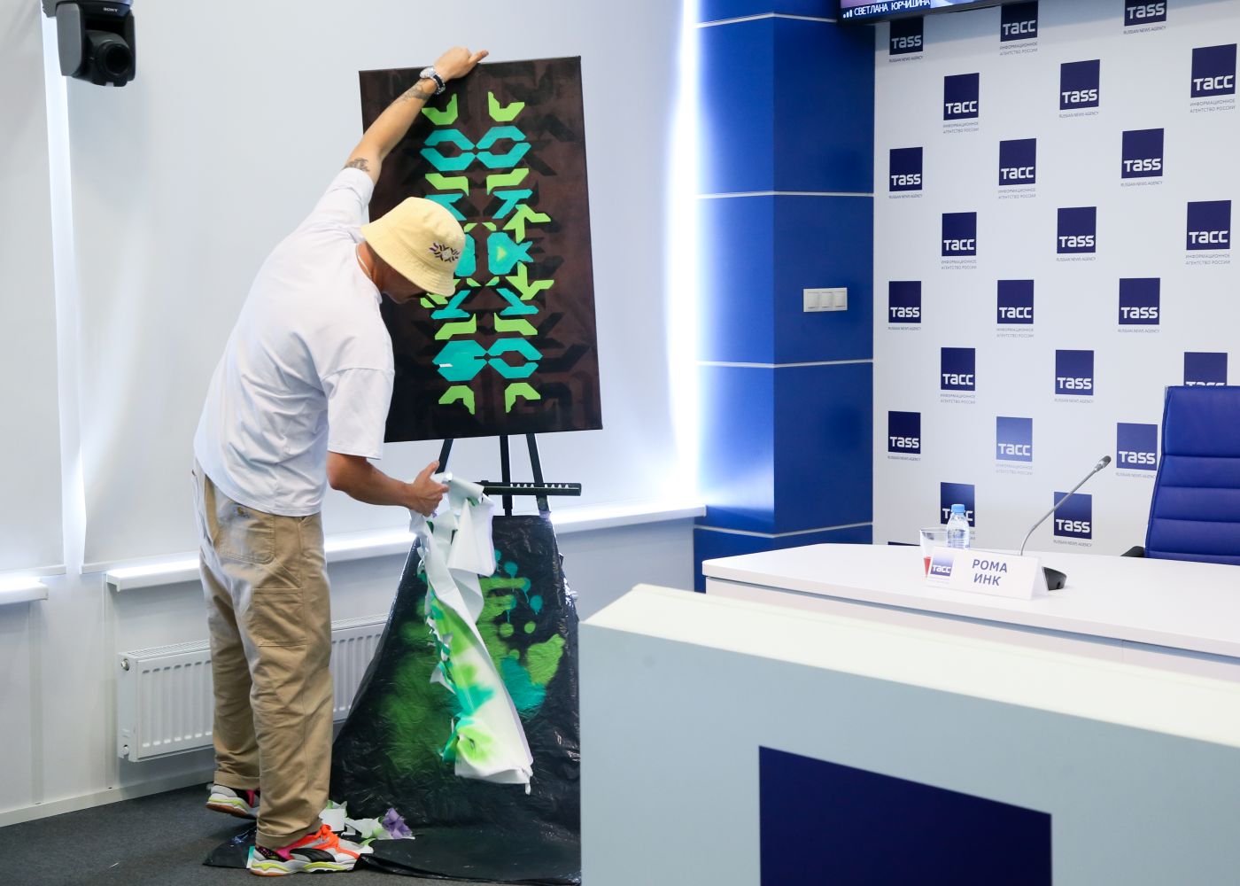«Вдохновляясь старыми узорами мне удалось провести небольшое исследование, поездить по заводам, пообщаться с людьми, собрать материал, переработать его и создать ряд элементов, из которых я складываю свои узоры. Каждый узор уникален. Тёмный оттенок символизирует чёрную металлургию, но в моей концепции здесь больше связано с лесами, окружающими нас. Зелёные части – листва и самоцветы», – рассказывает художник Рома Инк.