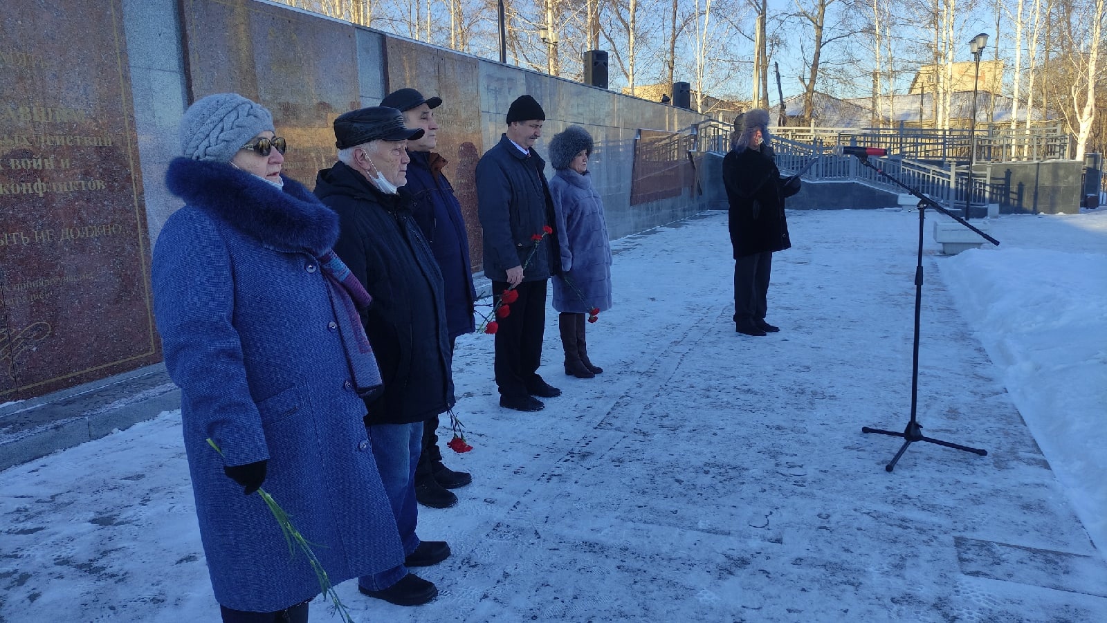 Участники митинга почтили минутой молчания память погибших героев и возложили цветы к мемориальным плитам.