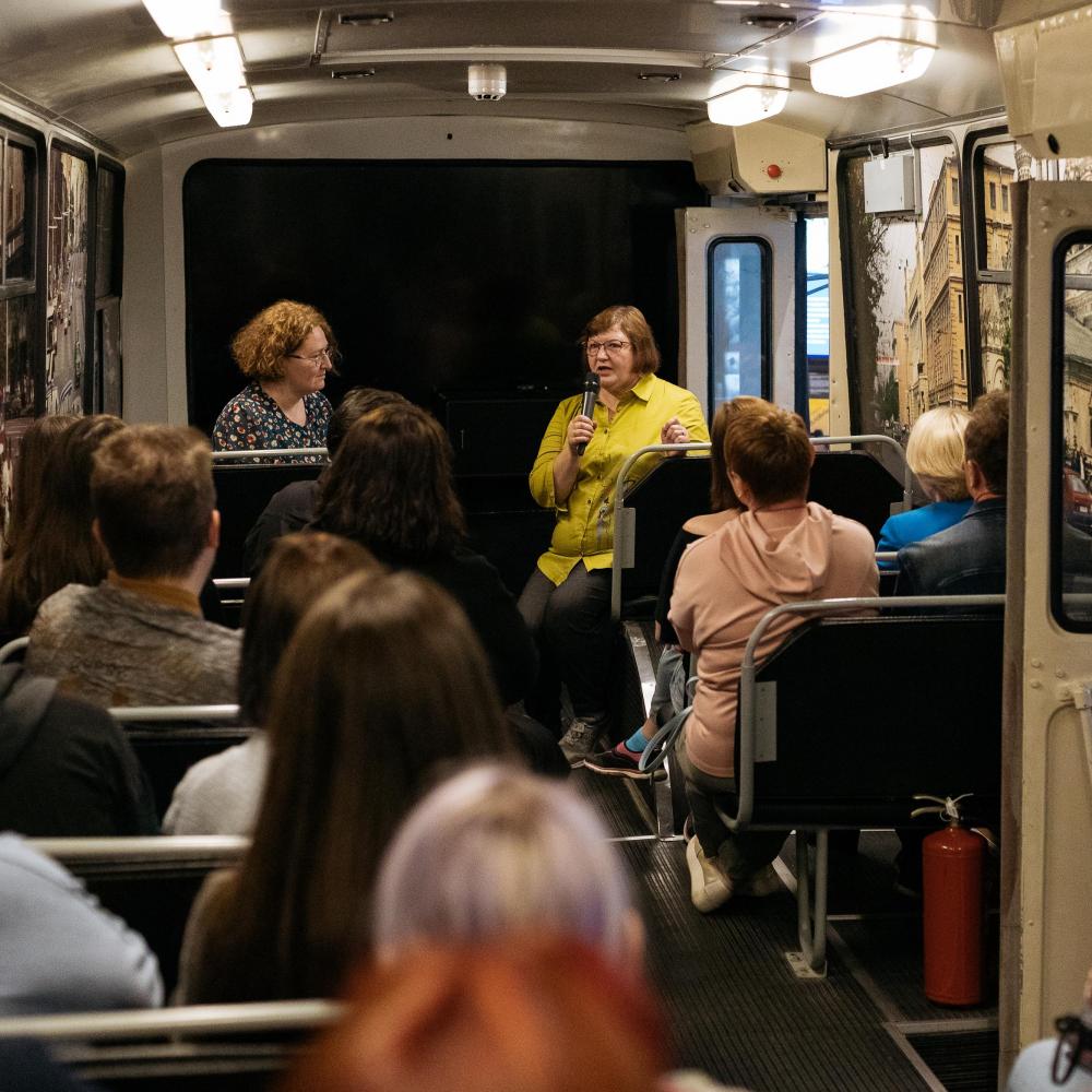В Ельцин Центре возобновил свою работу клуб «Мои 90-е». Первое после длительного перерыва, связанного с пандемией, заседание клуба, традиционно проходящее в музейном троллейбусе,