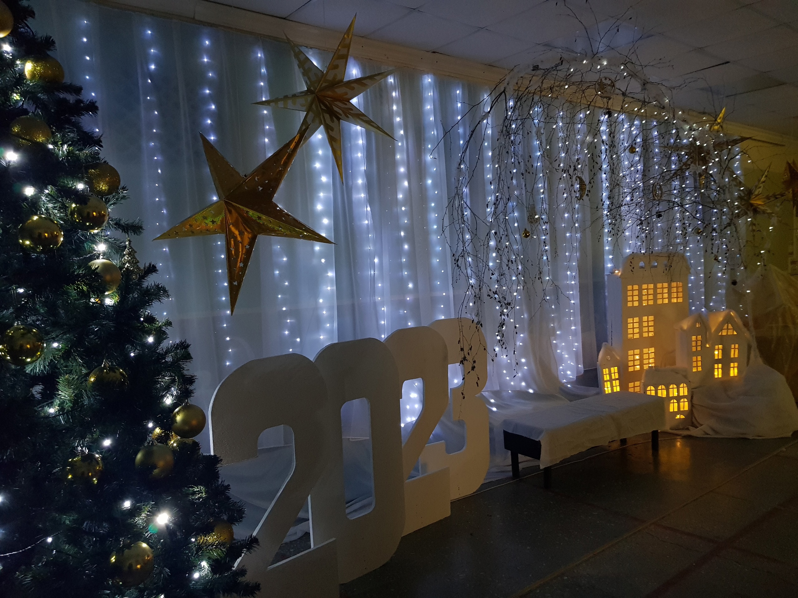 Сотрудники ЦК "Россия" продолжают готовиться к новогодним праздникам. Активно идёт работа по украшению фойе и фасада.