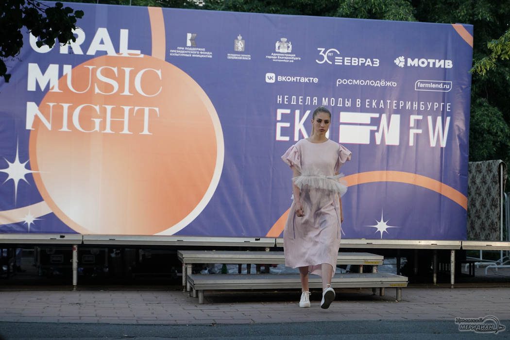 Как передает корреспондент ИА «Уральский меридиан», для показов специально был обустроен подиум длиной 150 метров. Локация подиума — рядом с главной сценой URAL MUSIC NIGHT.