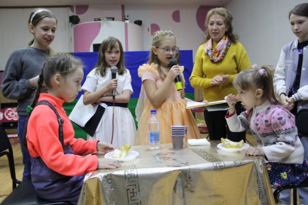 Открыла встречу руководитель объединения Валентина Петровна Бойкова, а присоединились к ней сказочные персонажи Клепа и Тепа, которыми управляли кукловоды Валерия Шепеленко, Максим Первухин, Лейла Ширинли и Ксюша Устюгова. Сладкое соревнование провели Лиза Дубинина (Королева Вкусняшка) и Настя Макарова (Принцесса Сластена). В финале ребята от души потанцевали и попробовали сладости за кружечкой вкусного чая.