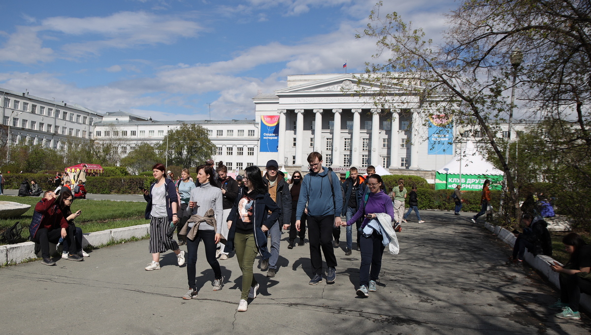 По предварительным данным, к акции присоединилось более 10,5 тыс. человек [фоторепортаж] Участники традиционной акции «Майская прогулка», которая проходит сегодня в Екатеринбурге, финишируют у главного учебного корпуса УрФУ.