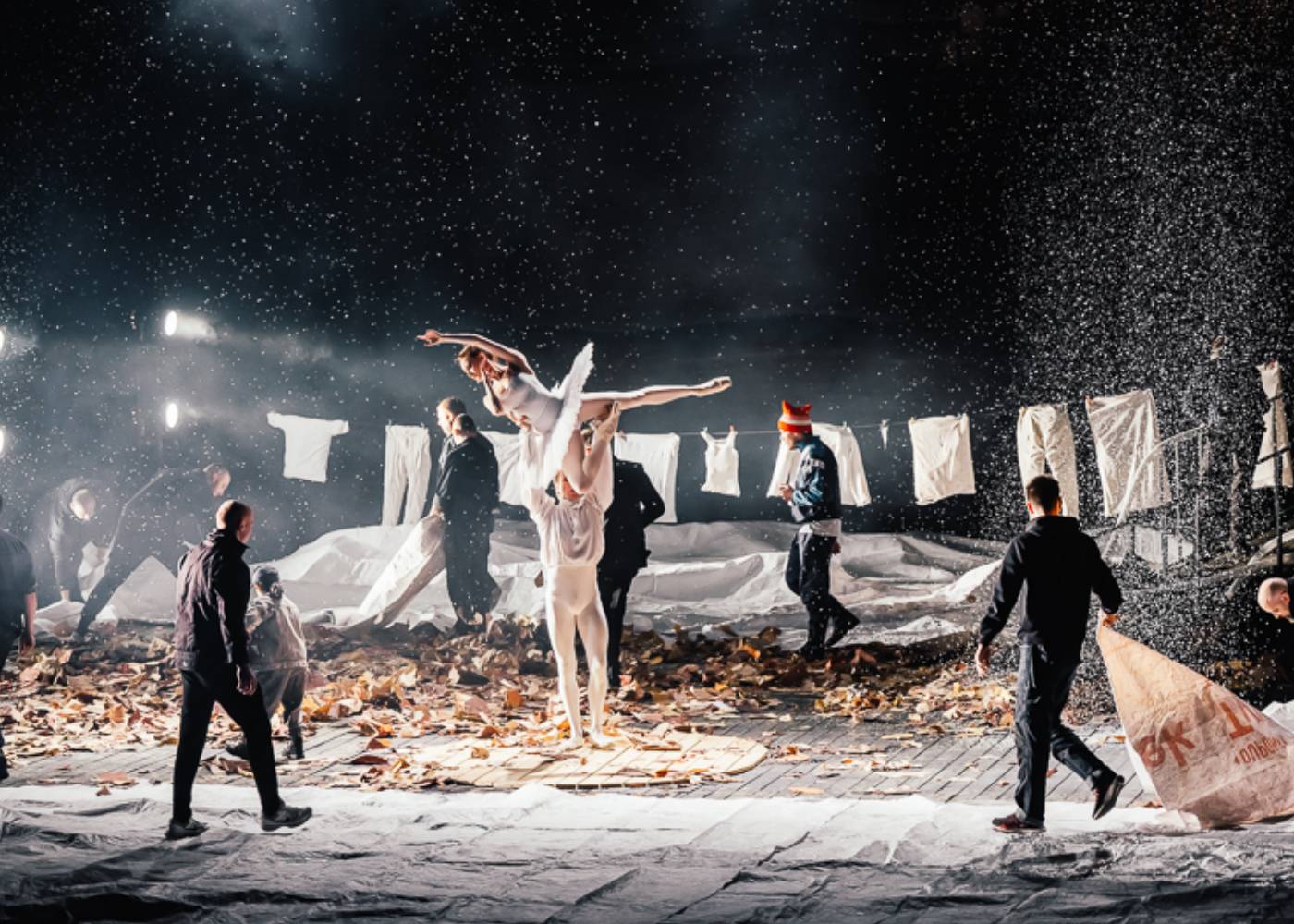 Звезда спектакля, ньюфаундленд Атрей отправился на гастроли вместе с артистами. Спасатель по натуре, на первых репетициях пёс переживал за то, что происходит на сцене с «хозяином». И даже, как рассказывают актёры, импровизировал.