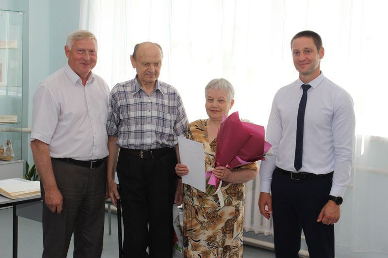 В подарок юбиляры получили цветы и памятные сувениры Александра Шилова и Сергея Гераскина. Сюрпризом для молодожёнов стало выступление танцевального дуэта Влады Момот и Арсения Чемезова, а ещё народно-музыкальные выступления воспитанников детской музыкальной школы №3 Лесовой Евы и Елисеевой Ольги.