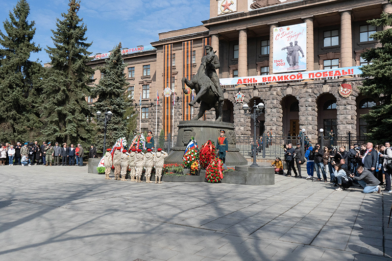 Накануне Дня Победы состоялось традиционное возложение цветов к памятнику маршалу Георгию Жукову . В мероприятии приняли участие представители командования Центрального военного округа (ЦВО) и силовых структур уральской столицы, ветераны Великой Отечественной войны и труженики тыла.