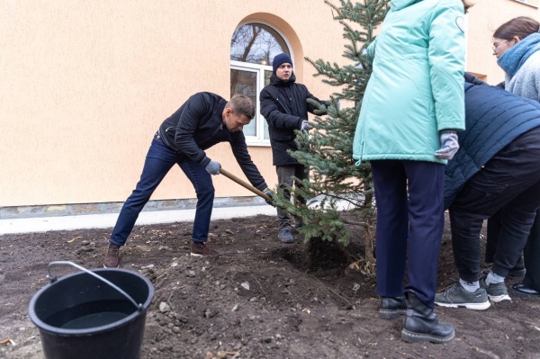 Депутат Вихарев вместе с гимназистами высадил голубые ели