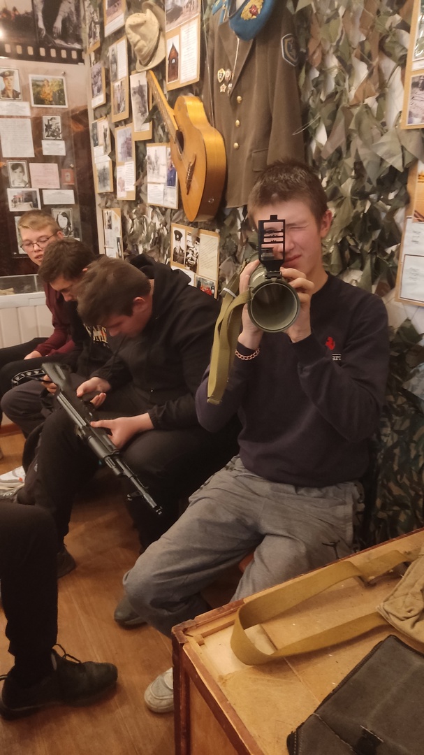 На встрече Александр Семёнович подробно рассказывал о тех жителях Тавды и Тавдинского района, кого ему удалось разыскать и чьи фото и документы теперь можно увидеть на стендах зала воинской славы. Так же Александр Семенович принес свои личные находки, показал их ребятам и разрешил рассмотреть поближе.