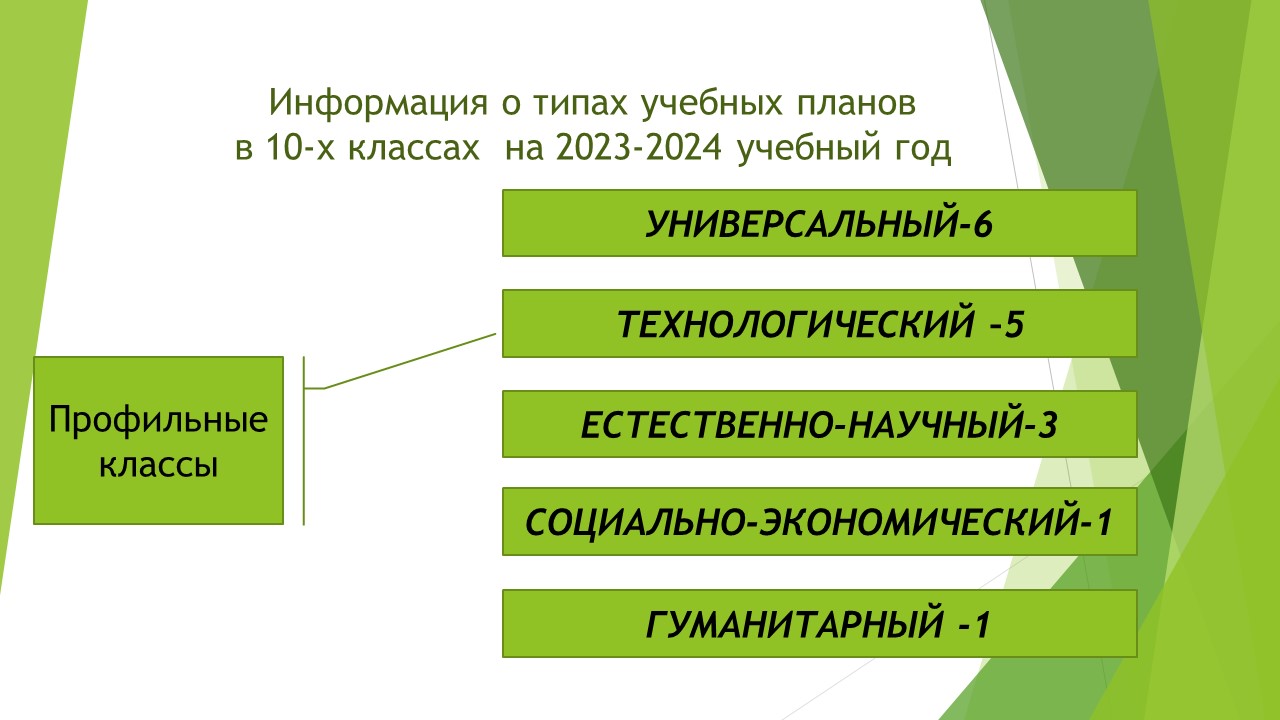 Информация о типах учебных планов в 10-х классах на 2023-2024 учебный год