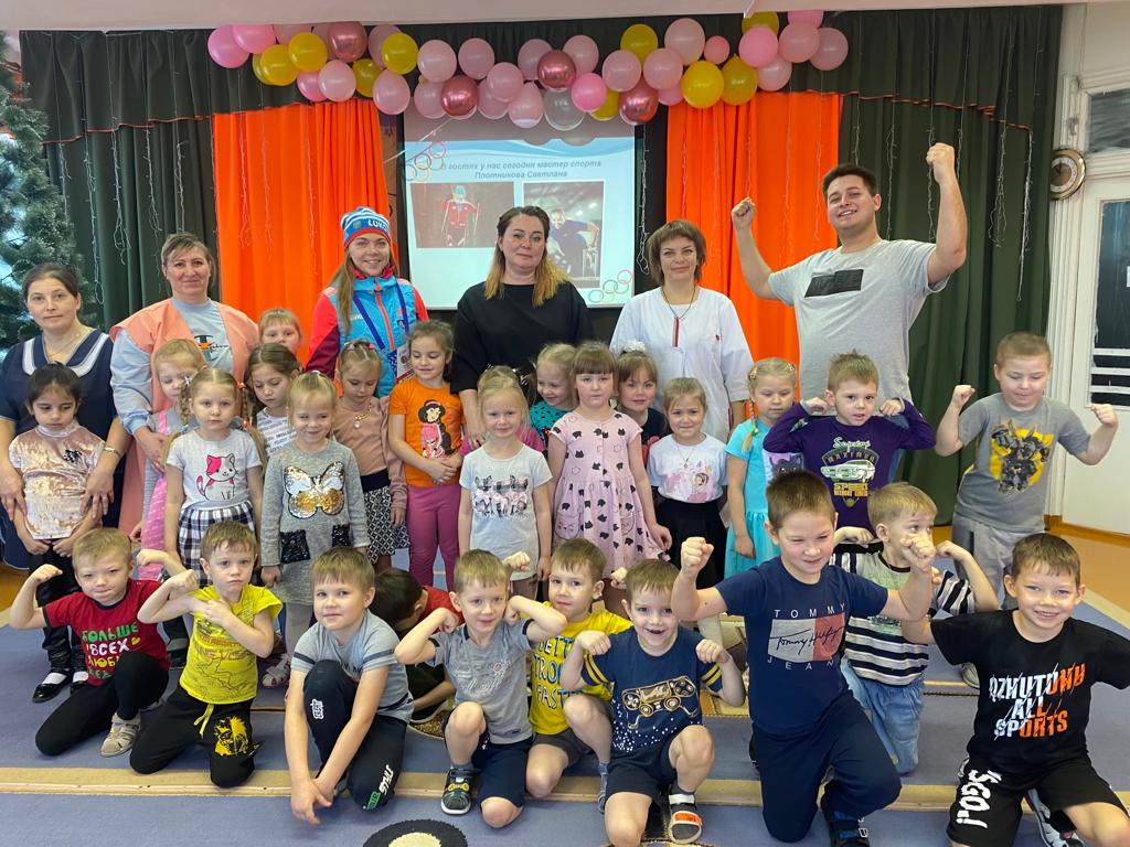У ребят из детского сада №19 «Тополек» выдалась прекрасная возможность прикоснуться к большому спорту. Они встретились с мастером спорта по лыжным гонкам, неоднократной чемпионкой Светланой Плотниковой. Она является призером и победителем областных и Всероссийских соревнований по лыжным гонкам. Была включена в расширенный состав Сборной России в 2017-2019 гг.