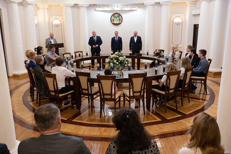 После официальной части награждения сотрудники Екатеринбургской городской Думы провели для участников конкурса, их родителей и педагогов экскурсию, в ходе которой они посетили галерею Почетных граждан Екатеринбурга и побывали в зале заседаний.