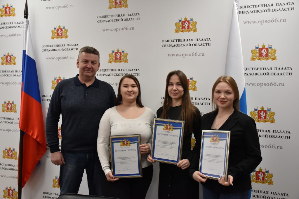 В Общественной палате Свердловской области призёрам первой Областной студенческой олимпиады по противодействию коррупции вручили почетные грамоты и памятные призы.