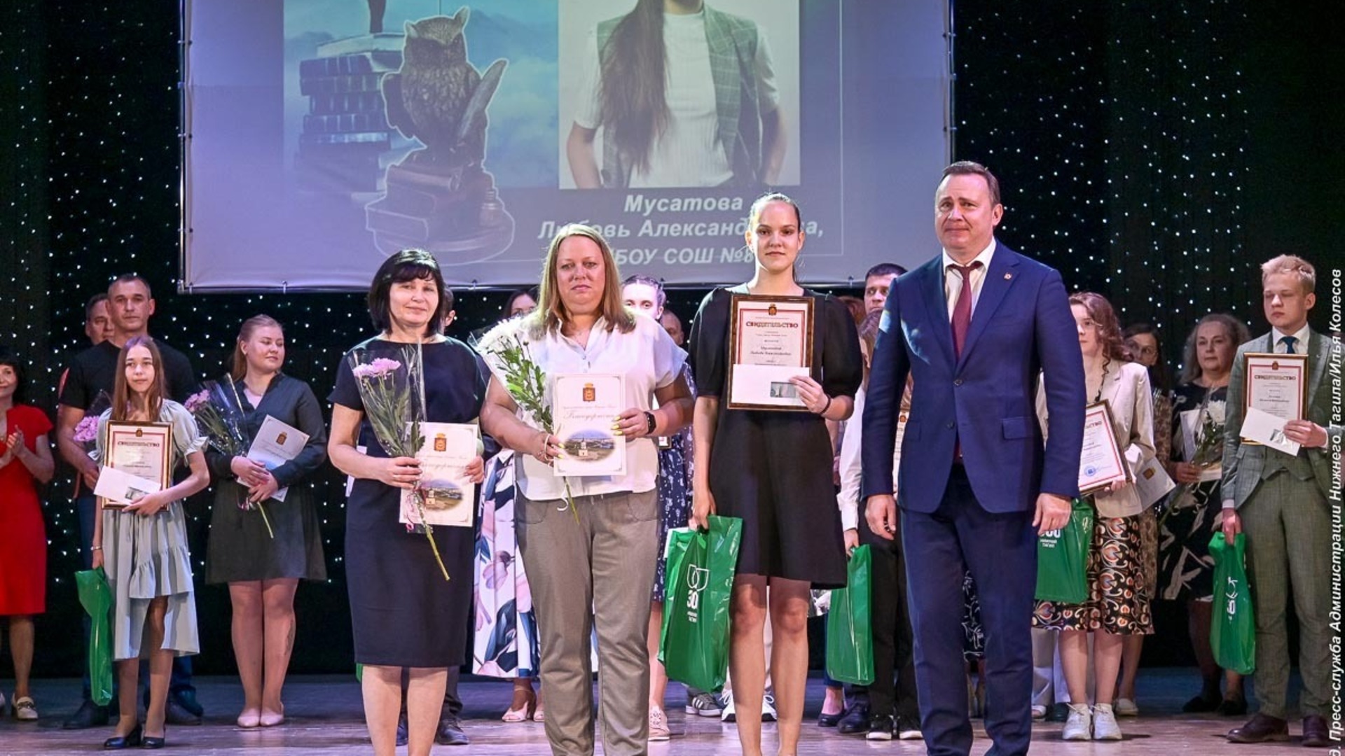 Фото: Администрация Нижнего ТагилаСвидетельствами также награждены: Тимофей Зябликов — обладатель гран-при межобластного конкурса юных пианистов «Фортепианная миниатюра»; Любовь Мусатова, занявшая призовое место в областном этапе российской олимпиады по обществознанию и ОБЖ; Феликс Белкин — призер областного этапа российской олимпиады по обществознанию, праву и английскому языку; Тимофей Пронин и Полина Бызова — занявшие призовые места в областном этапе российской олимпиады по праву, обществознанию и истории; Анна Тонкова — призер заключительного этапа российской олимпиады по немецкому языку.