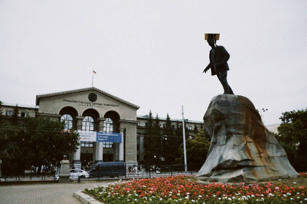 В Екатеринбурге на памятники Свердлову, Кирову и Горькому одели конфедератки. Сегодня у студентов Уральского федерального университета (УрФУ) – выпускной.