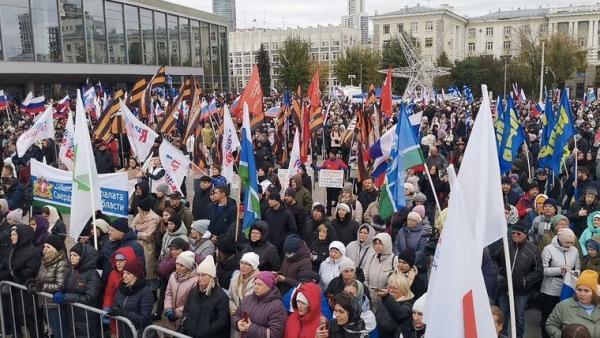Фото: телеграм-канал "Бажовский сказ"Вхождение Луганской и Донецкой республик, а также Херсонской и Запорожской областей в состав России свердловчане отметили митингом в минувшую пятницу, - обращает внимание телеграм-канал "Бажовски сказ". У Дворца молодежи в Екатеринбурге собрались несколько тысяч человек.