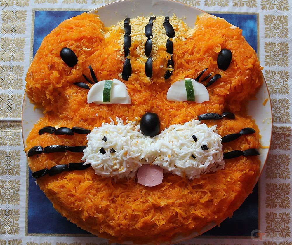 Что можно и нужно готовить Задобрить символ наступающего года очень просто. Тигр любит покушать, поэтому стол не должен оставаться пустым. Среди блюд приветствуются различные салаты, закуски, горячие блюда, десерты, рыба, напитки. И обязательно много мяса!
