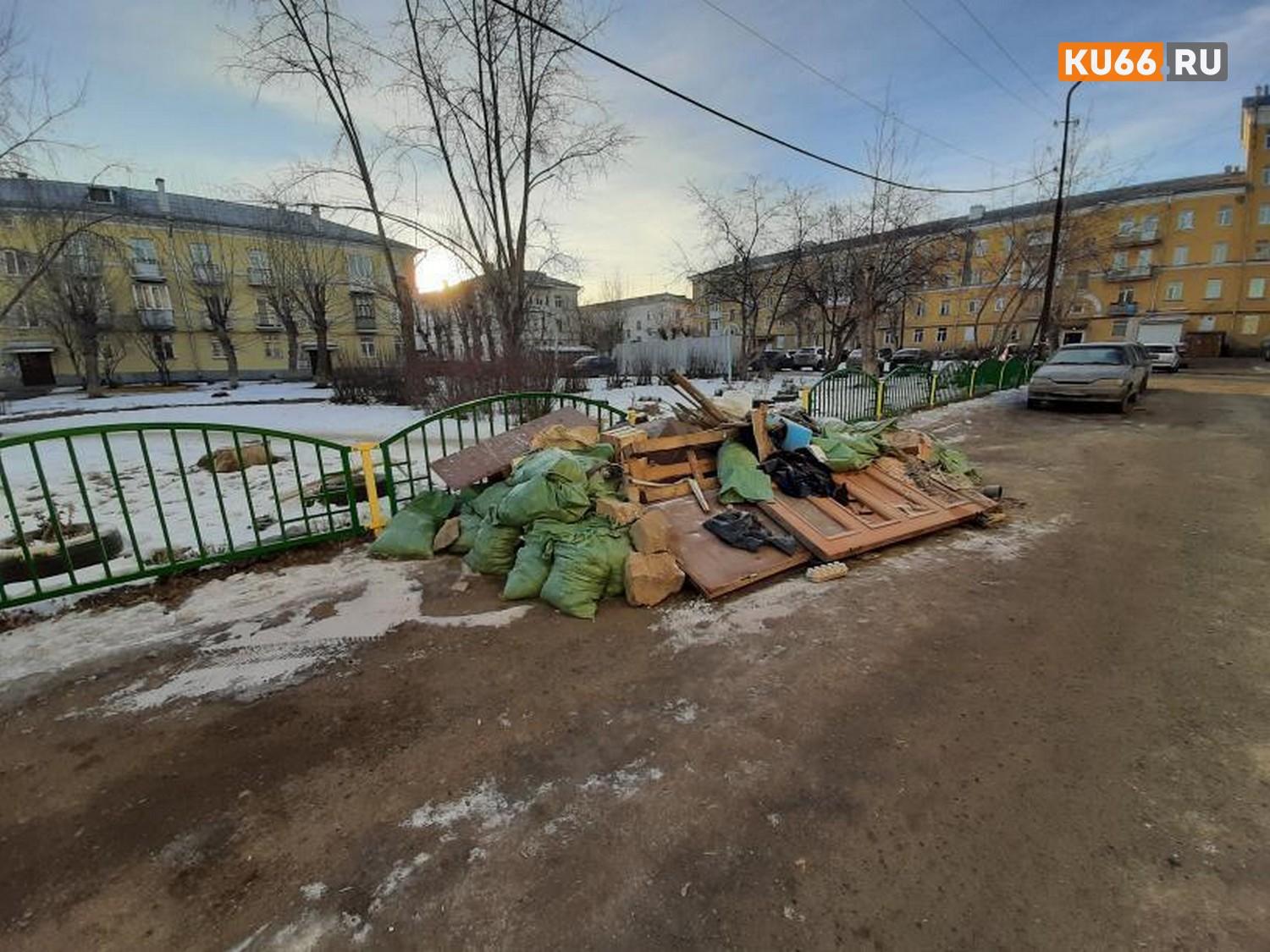 У дома в Каменске-Уральском остались кучи строительного мусора после ремонта в подвале. Он лежит здесь уже 2,5 недели