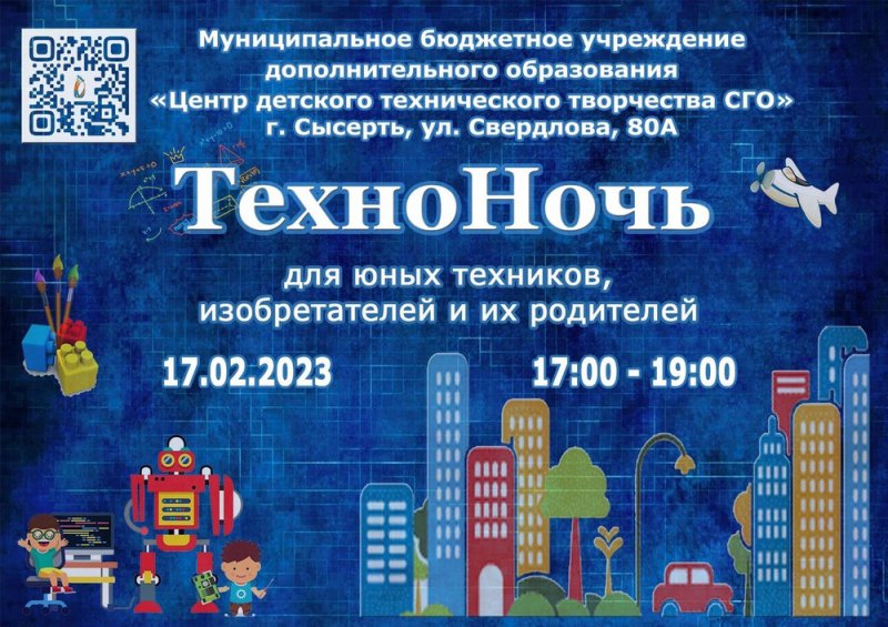 17 февраля в Центре детского технического творчества (г. Сысерть ул. Свердлова, 80А) пройдет грандиозное мероприятие «ТехноНочь».