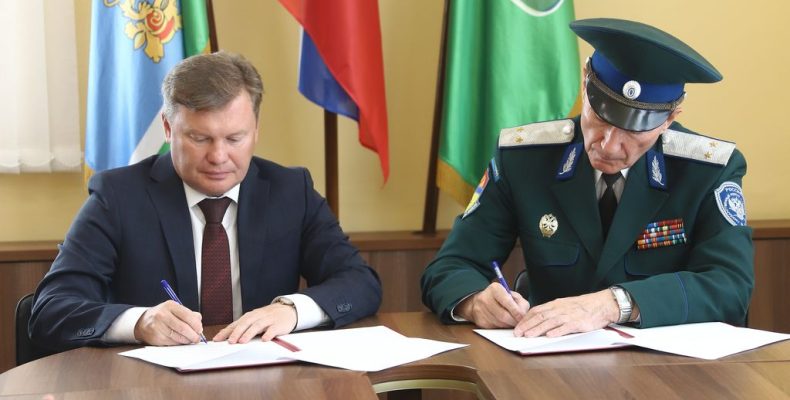 На фото. Глава города А.В. Половников, Казачий генерал В.И. Романов подписывают соглашение о сотрудничестве между администрацией Камышловского городского округа и Оренбургским войсковым казачьим обществом.