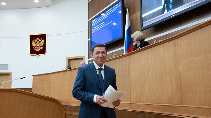Губернатор Свердловской области Евгений Куйвашев выступил перед депутатами с докладом о результатах деятельности правительства региона в 2021 году.