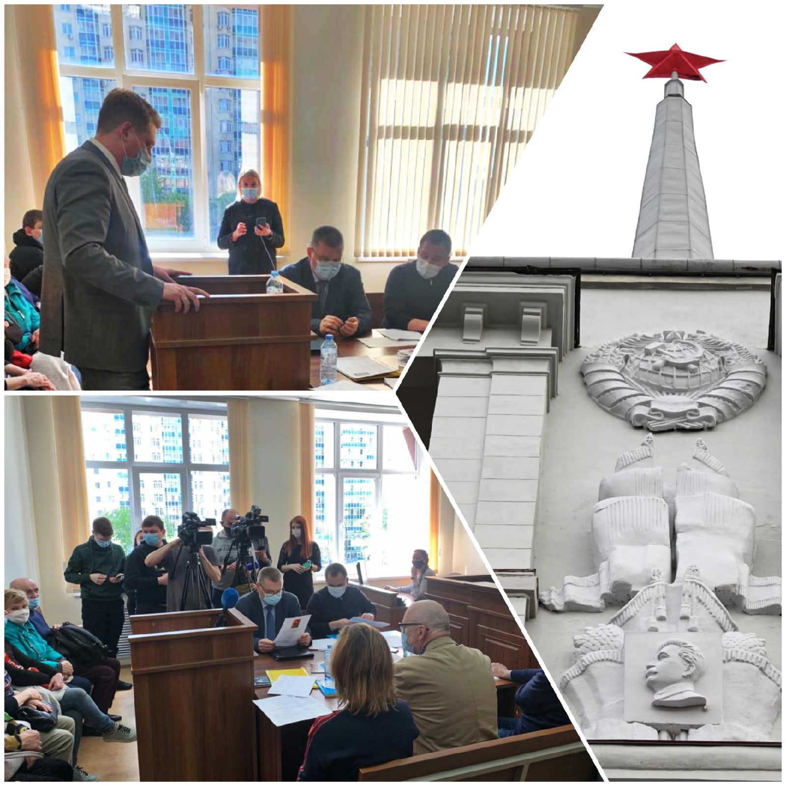 Сегодня состоялся суд по иску против Окружного дома офицеров. Истец требовал демонтировать барельеф И.В.Сталина, который был восстановлен в рамках реставрационных работ. Ответчиком был директор Окружного Дома офицеров – Сергей Анатольевич Конов.